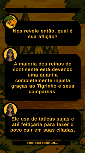 Design dos personagens interessante, adorei o efeito da carta quando arrasta.